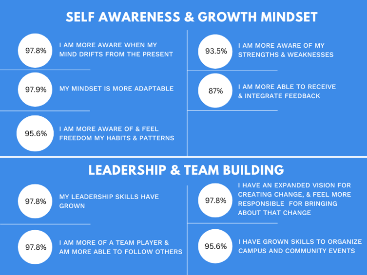 A randomized controlled study run by Yale University scientists evaluated the effect of SKY and two other programs - Mindfulness-Based Stress Reduction and Emotional Intelligence - on undergraduate well-being as compared to a control group. Mindfulness-Based Stress Reduction showed no improvement compared to the control group, Emotional Intelligence showed one improvement (mindfulness) and SKY had the highest results of all the programs, benefiting stress, depression, mental health, mindfulness, positive emotion and social connectedness.